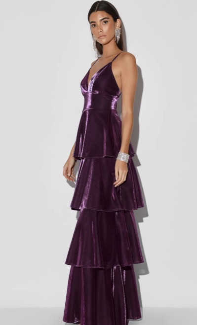 Can't Stop the Glam Purple Metallic Tiered Maxi Dress