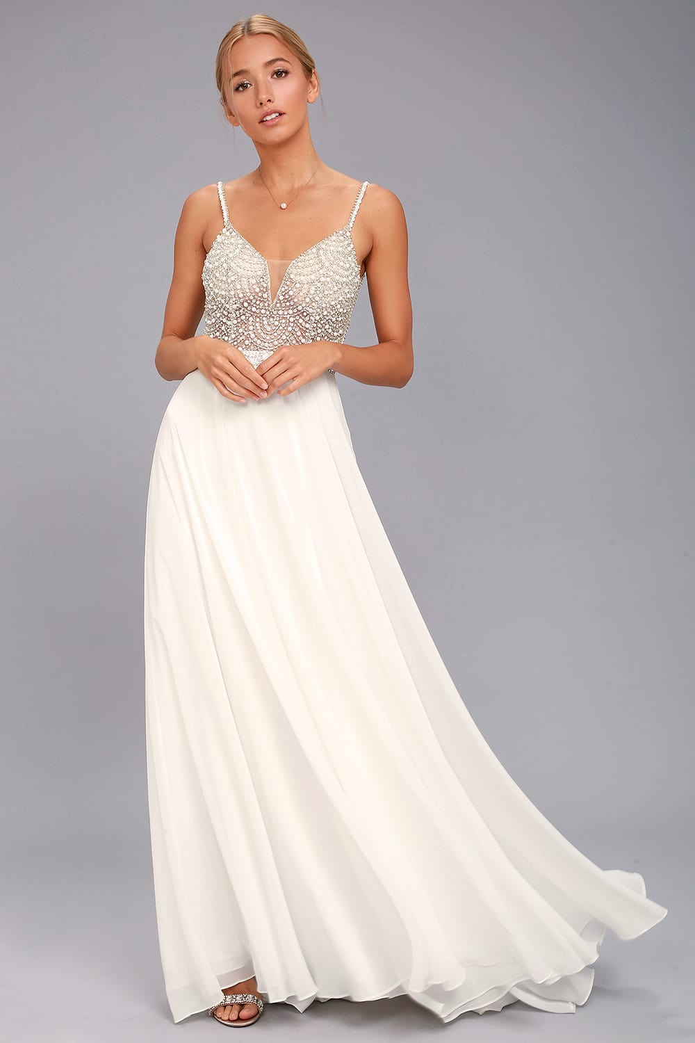 True Love White Beaded Rhinestone Maxi Dress