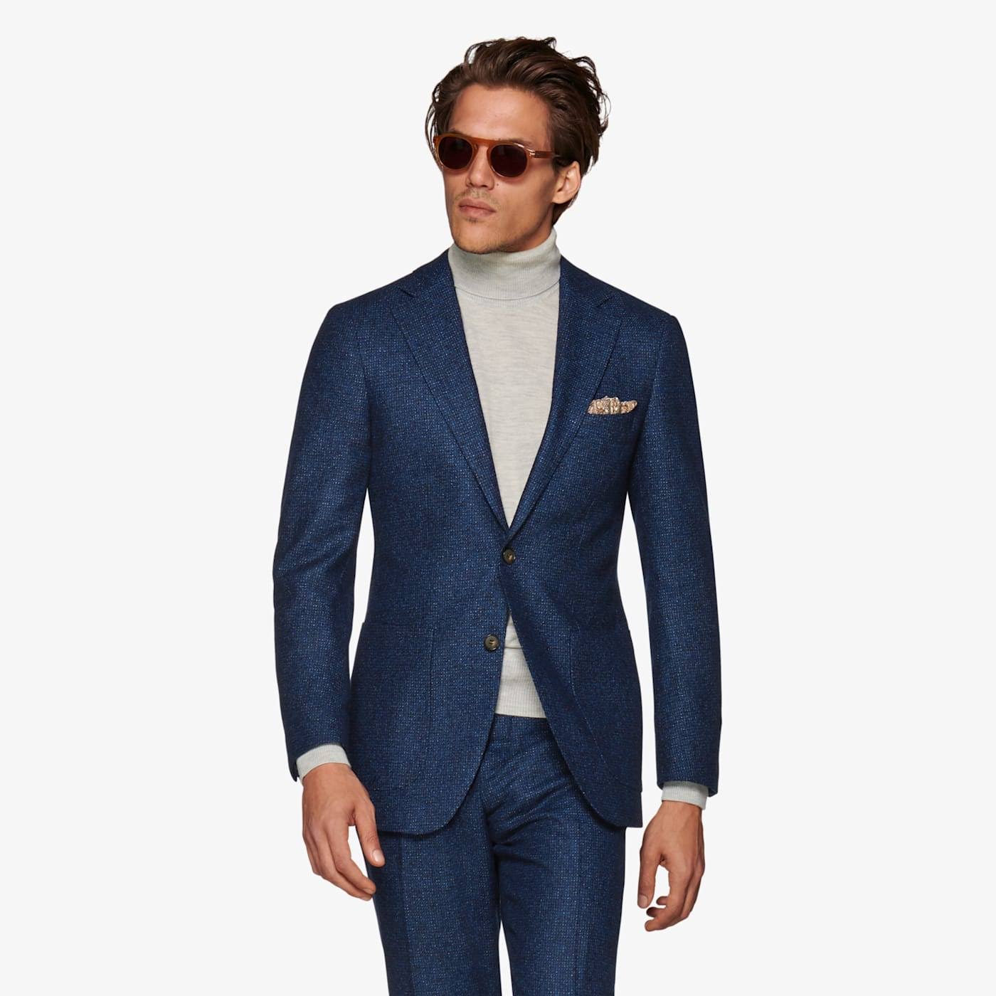 Blue Plain Suit in Wool Mohair Silk Cashmere