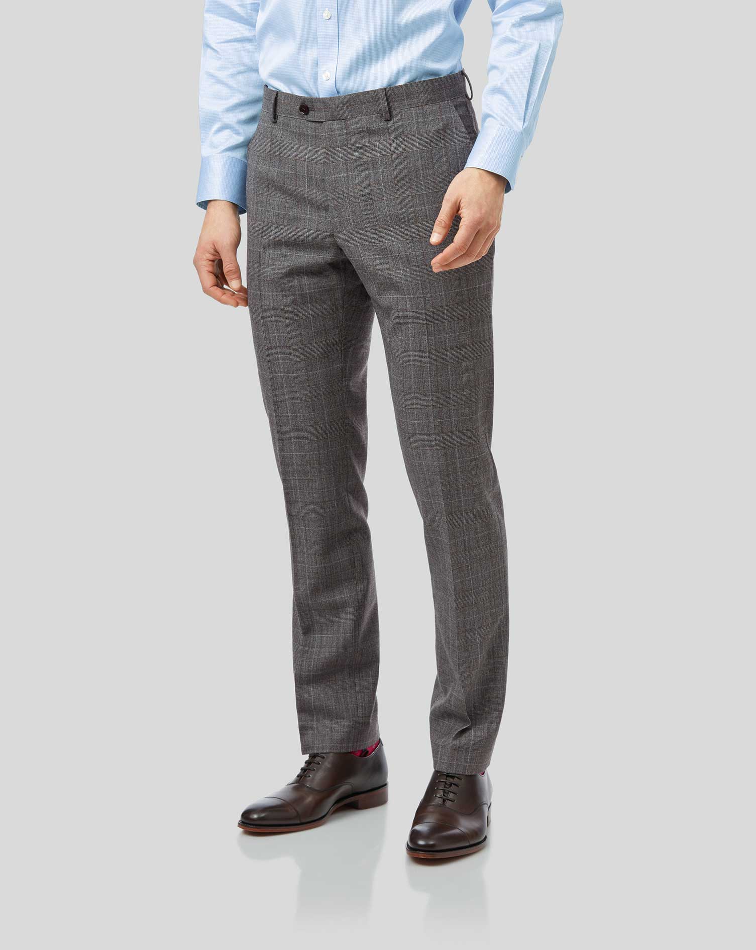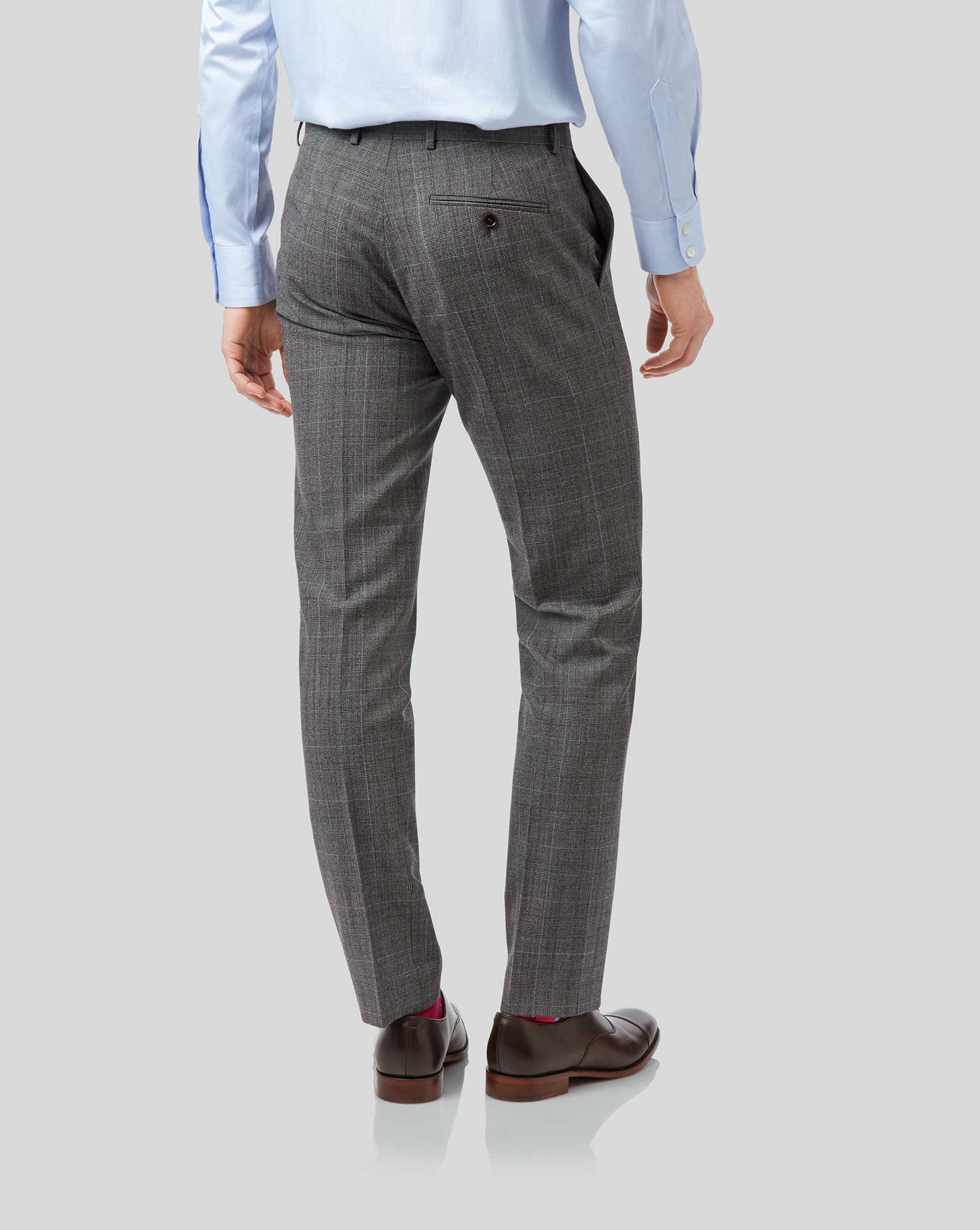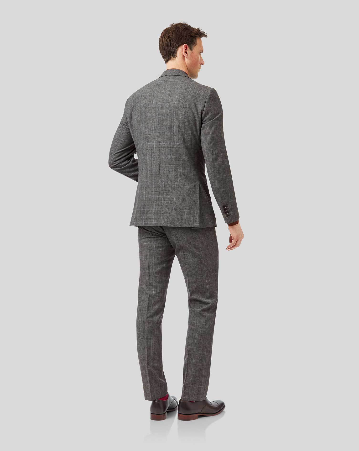 Our merino wool checked suit with peak lapels, modern-cut with a shorter jacket length - choose the full suit or mix and match.